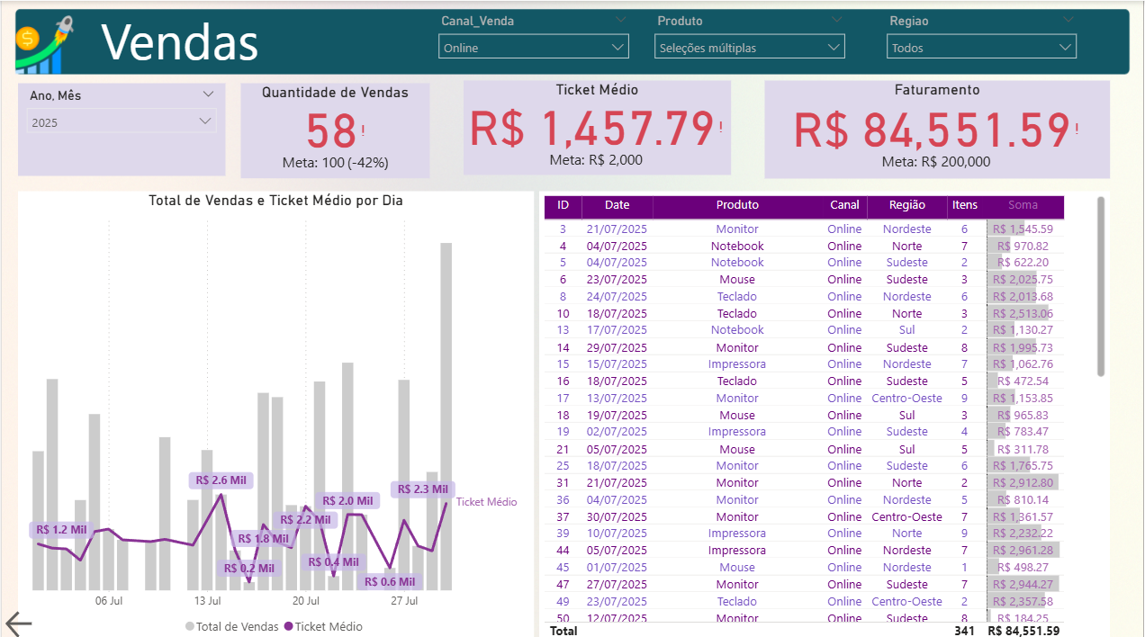 Dashboard completo em Power BI, testado e aprovado por profissionais de grandes empresas.