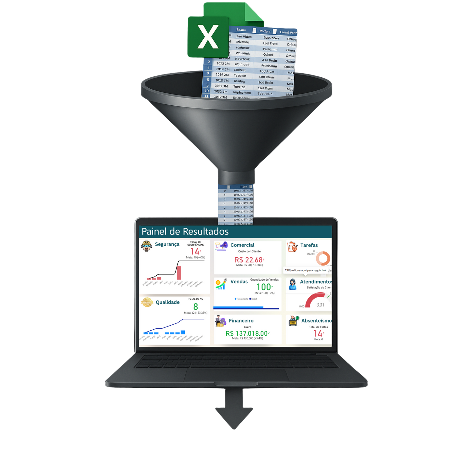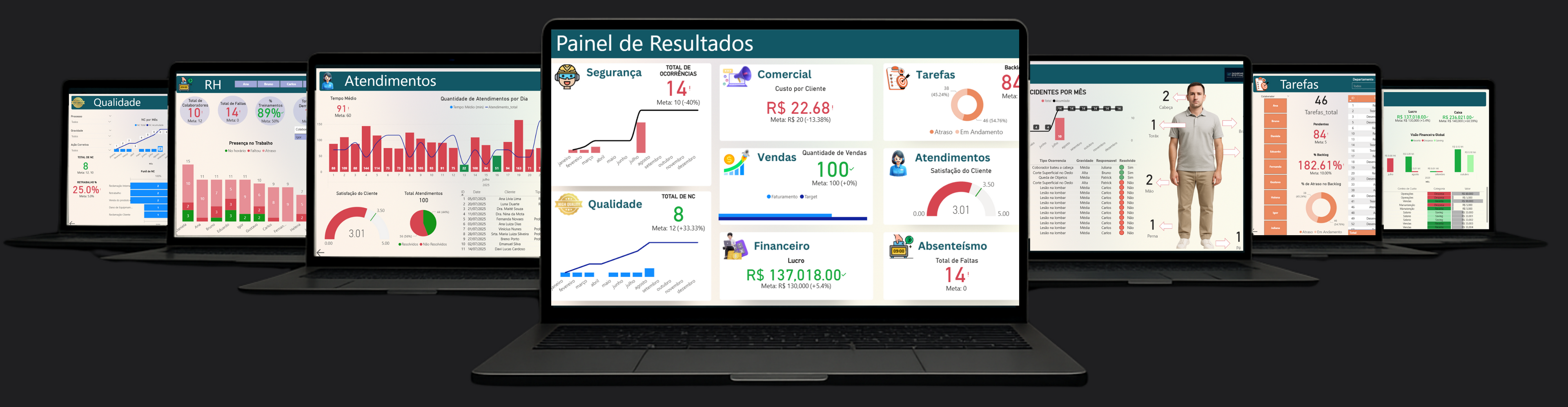 - Design Estratégico: como posicionar gráficos e indicadores para transmitir clareza e impacto visual.